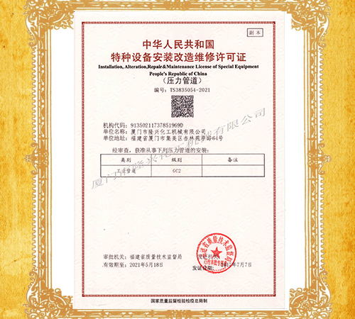 廈門隆興化工機械有限公司成立于2001年5月,占地面積30000平方米,擁有生產(chǎn)車間面積10000平方米及相關配套的辦公場所3000平方米,其中下料場所1000平方米,不銹鋼制作場所2000平方米,ASME產(chǎn)品制作區(qū)域1200平方米,無損曝光室30平方米。公司有職工135人,擁有專業(yè)的技術人員和管理人員36人。公司主要從事設計、制造A2級覆蓋D類壓力容器...